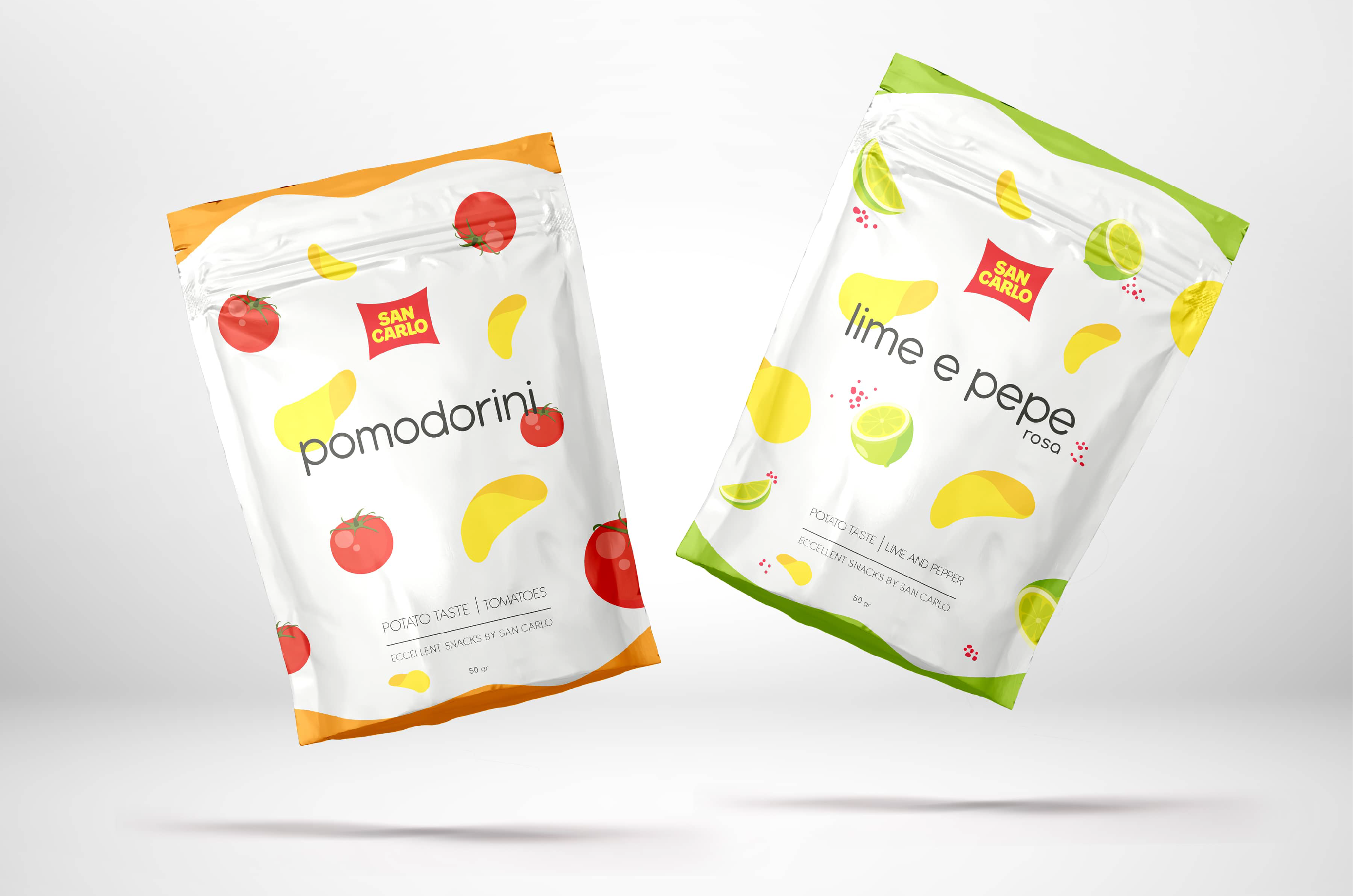 For this packaging redesign, I tried to modernise the packets of San Carlo crisps, through